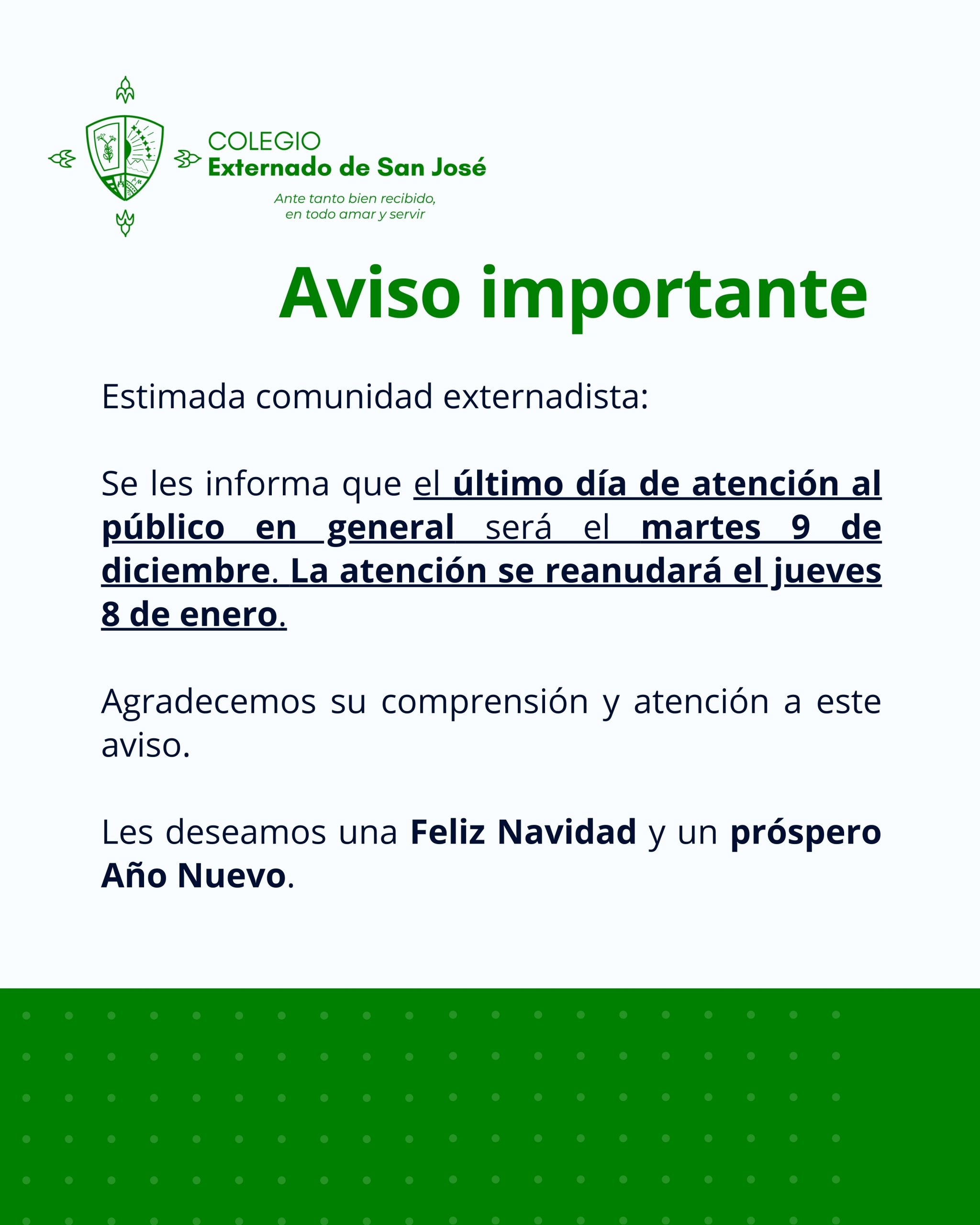 Ante tanto bien recibido, en todo amar y servir